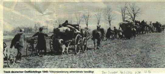 It's night as we leave the house. On the old road to Pillau the wagon wheels grind endlessly as they pass by. Alongside, people of every age and position pull their sledges or push fully laden prams. No one looks back. (Kershaw)